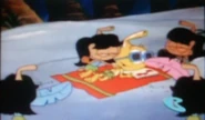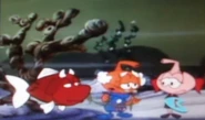 They decide to do "Jill and the Seabean Stalk," and to the viewers the characters resemble the snorks. It starts out by Jill and her grandfather (Casey and Grandpa) being poor and really hungry. In order to make some money, Jill's forced to sell the cow, and she sells it to a snork who gives her some magic sea beans in return (Junior). Her grandfather gets mad at her for getting sea beans, so he throws them out. She proves they're really magic sea beans, and outside it grows into a large and tall stalk that hits dry space. She goes up there, only for her cousin Jack to drop by unexpectedly (also portrayed by Junior).