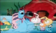 Back at the amusement park, Willie's the only one riding the Monster Clam. Then he decides to see the film, I Was Married to a Snorkeater. It turns out to be too scary for him, despite him being tall enough to make everyone else in the theater leave. Outside the jailhouse, Casey ends up meeting Dinkey, Buster's scarier looking brother. She frantically swims away, saying adventure's not good all the time. At the same time, Allstar and Occy are being chased by a dogcatcher. After he's gone, Allstar tries getting a steak at a fancy restaurant. The owner throws him out, and the same elderly lady offers to feed him. Turns out it's dogfish food, so Allstar refuses to eat it. All three characters return to the Snailsman, demanding their money back, and to change them back to their former selves. However, he only has one pearl left. Willie and Casey fight for it, but Allstar grabs it, and they all turn back to normal. He had wished for ALL of them to be back to normal, instead of just one. Corky catches the Snailsman, so all four (plus Occy) chase him out of town.
